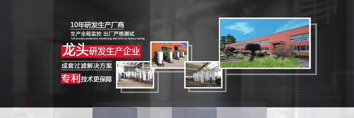 成都愛爾純凈化設備有限公司,坐落于美麗的天府之國,成都市溫江區(qū)海峽科技園工業(yè)區(qū),專業(yè)從事于過濾、凈化技術的研發(fā)應用,產(chǎn)品有保健酒過濾設備、白酒過濾設備、白酒凈化設備、水凈化設備等,公司引進世界先進過濾分子技術,結合專業(yè)技術人員資深多年實踐經(jīng)驗,解決酒類、飲水類后期處理難題。 業(yè)務涵蓋,酒類過濾:除混濁沉淀,澄清處理、除苦味,異雜味,新酒催熟陳化處理 、除塑化劑、固形物、雜醇油、甲醇及各類含量超標后期處理。 水類:軟水、純凈水、礦泉水、飲料等凈化處理。用心為客戶提高生產(chǎn)效率、提高產(chǎn)品質量、降低生產(chǎn)成本、環(huán)保減排而開發(fā)創(chuàng)新,堅持奮斗。 公司至誠每一位客戶,“誠信服務,客戶至上”為宗旨,為客戶要求,用心凈化每一點滴,我們都將以精準的數(shù)據(jù)化設計、嚴格的設備制作質量把關、快捷專業(yè)的安裝調試以及周到的售后服務,解決客戶生產(chǎn)過程中遇見的各種酒、水后期處理的技術難題。